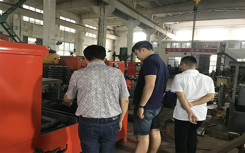 領(lǐng)導(dǎo)給客戶詳細(xì)介紹了我廠的產(chǎn)品,并一同進(jìn)入生產(chǎn)車間實(shí)際了解礦用電機(jī)車及礦用牽引電機(jī)等配件的生產(chǎn)、測(cè)試。